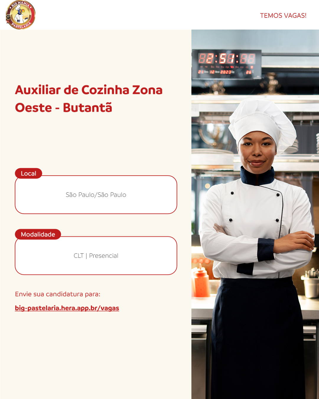 Estamos em busca de um(a) Auxiliar de Cozinha para atuar na Zona Oeste, no Butantã. O(a) profissional será responsável por auxiliar na preparação de alimentos, organização da cozinha e manutenção da limpeza dos utensílios e equipamentos. É essencial ter atenção aos detalhes e seguir as normas de higiene e segurança alimentar. Valorizamos a diversidade e incentivamos a candidatura de pessoas de diferentes origens e experiências. Se você tem paixão pela gastronomia e deseja crescer na área, essa oportunidade é para você.